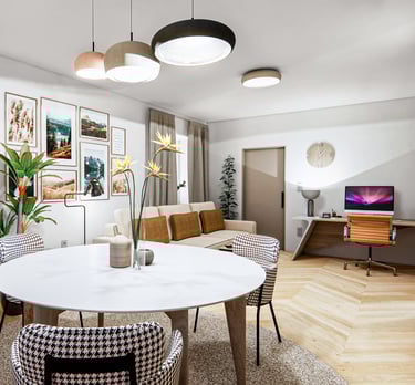 Vytváříme kompletní interiérový koncept pro prázdné nebo nově vznikající prostory – včetně dispozičního řešení, výběru konkrétních prvků a materiálů, návrhu osvětlení, umístění elektroinstalací a ladění stylu do posledního detailu. Zaměřujeme se na funkčnost, estetiku i sladění všech detailů pro hladkou a efektivní realizaci.
