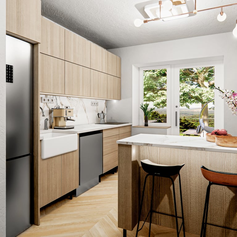 Zpracujeme detailní návrh pro úpravu a modernizaci stávajících prostor – včetně optimalizace dispozice, nového rozmístění nábytku, návrhu osvětlení, dekorací a elektro prvků (zásuvky, vypínače, svítidla). Doporučení vhodných povrchových úprav, materiálů a doplňků pro dosažení funkčního, vizuálně sladěného a prakticky využitelného interiéru.